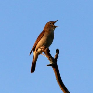 Endlich, nach laaaange Zeit konnte ich wieder eine Nachtigall ablichten.Eigentlich wollte ich Bienenfresser fotografieren, da hüpfte aus dem Dickicht eine Nachtigall auf einen dürren Baum und trällerte vor sich in, wenige Meter entfernt 🙂