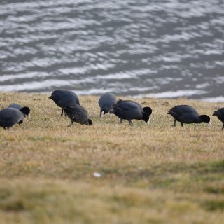 Letztens war ich gegen 8.00 Uhr morgens auf dem Weg zum Drachensee. Da entdeckte ich diese Vielzahl von Blässhühnern, die gemeinsam ihr Frühstück einnahmen.