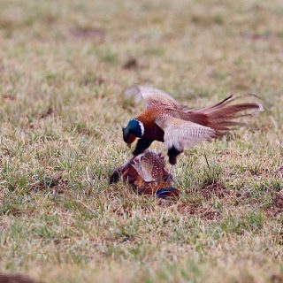 Heute sind wir mal zum Rötelseeweiher gefahren, hatten unsere Hunde im Auto. Da konnte ich auf der Wiese diese beiden Fasanen, offensichtlich im Streit um das Revier, beobachten. Leider hat dann der Hund im Auto angeschlagen. So war das Schauspiel nur von kurzer Dauer. Schade, aber eine kurze Sequenz konnte...
