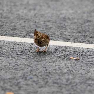 Auf einem Rastplatz traf ich diese Haubenlerche. Hoffentlich hat sie nicht an den herumliegenden Kippen gepickt.