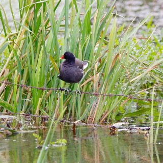 Dieses Teichhuhn zeichnet sich durch artistische Fähigkeiten aus.