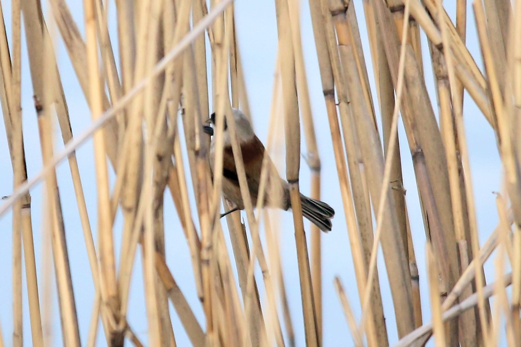 Gestern hatte ich am Abend eine Begegnung mit 2 Beutelmeisen (m+w) in Schönau bei einem Teich im Schilf. Leider war die Dämmerung schon weit fortgeschritten, dass ich nur qualitativ schlechtwertige Fotos habe – die beiden wollten kein einziges Mal still halten. Das erschwerte die Sache natürlich enorm.