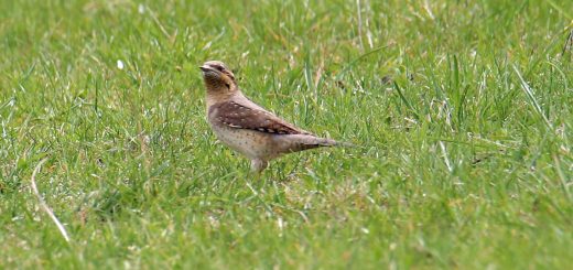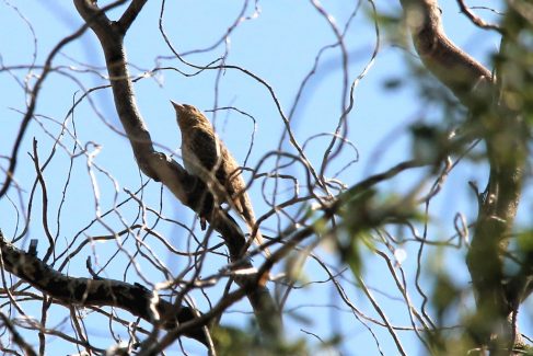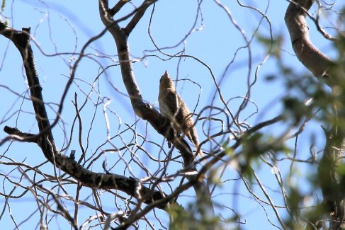 Die Suche ergab sich nicht einfach, obwohl er vor unseren Nasen in der schütteren Baumkrone hockte.