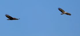 Die Flieger sind wohl denke ich Busarde – wobei der helle vlt auch eine Weihe ist?