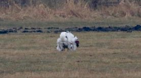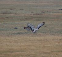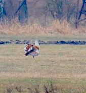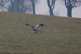 Aber am Samstag, zwar war das Wetter auch nicht besser, habe ich noch einen Versuch gestartet und hatte dann mehr Glück. Es waren drei Trappen (zwei Hennen und etwas weiter weg ein Hahn) da.