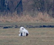So Männer, nun ein kurzer Bericht über meinen Ausflug in den hohen Fläming. Dort, wo ich früher zuhause war, gibt es einen Naturpark und in ihm ein Schutzgebiet für die Großtrappe. Das hat mich natürlich interessiert und so habe ich meine Schwester besucht und den Naturpark. Leider war das Wetter sehr schlecht. Erstens kalt und zweitens keine Spur Sonne, also schlechtes Licht.Richtig diesig.  Als Krönung dann auch noch keine Trappen. Das war am Karfreitag. Aber es gab an diesem Morgen einen anderen Besucher auf dem Trappen-Gelände, der bei allen Anwesenden für große Aufregung sorgte. Ein Wolf zeigte sich.
