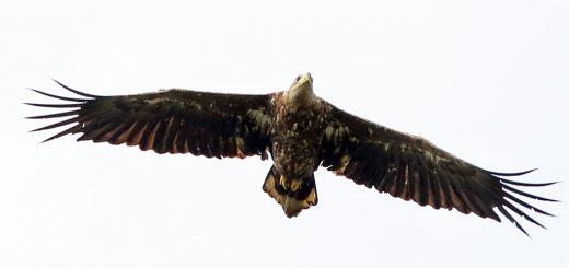Ich war mit Susi und Marco in Hohenau, kurz vor Hohenau sind wir auf den Feldern stehen geblieben, da etliche Mäusebussarde, Schwarzmilane und Rohrweihen ihre Kreise zogen. Als ich schon ins Auto steigen wollte rief Susi aus dem Auto „dreh dich um. Marco rief ein Geier (wahrscheinlich wegen der Größe). Anscheinend ist der Seeadler irgendwo im Feld gesessen und stieg jetzt auf, behäbig und langsam wie ein Jumbojet. 30 Meter vor mir vorbei. Leider war das Licht frühmorgens noch schlecht. Trotzdem sind ein paar brauchbare Fotos geworden. Der Adler trägt übrigens einen Sender am Rücken.